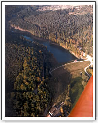 Vermessung, Plangrundlagen, Höhenaufnahme, Digitales Geländemodell, Ermittlung / Berechnung von Füllstandslinien und Wassermengen, Schüttmengen zum Dammbau, bei der Planung großer Regenrückhaltebecken, Bodenlabor betreiben, Überwachung der Dammverdichtung beim Bau von Erddämmen